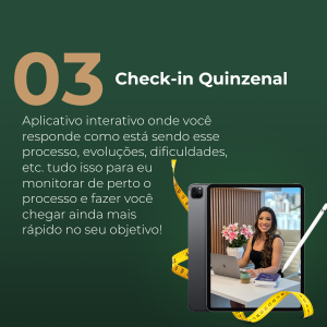 Pelos relatórios semanais! Neles eu coleto dados importantes que são o meu guia durante o trabalho. Fotos, peso, variações na rotina e marcadores de biofeedback como: sono, apetite, recuperação, energia, digestão, estresse e outros. A partir desses dados eu consigo avaliar se você está evoluindo ou não, e fazer qualquer alteração que seja necessária. Fora toda a nossa comunicação em horário comercial via WhatsApp.